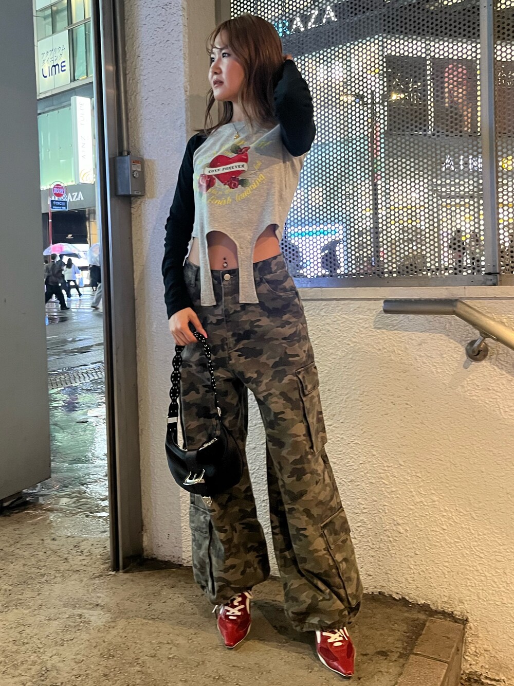【トップス】 オリジナルグラフィックが目立つデザイン🥰ガーター付きでインしても可愛い! 162cmでお臍見える丈感です🙂 【ボトムス】 ゆるっと履けるカーゴパンツ❣️ 裾にアジャスターが付いていて丈感調節出来ます! 【シューズ】 デニムコーデと合わせ◎のシューズヒール🥰中敷がめちゃくちゃ柔らかいので足が疲れにくいです! 普段サイズ24.5cmでLサイズです! 【バッグ】 お持ちしやすいサイズ感の手持ちバッグ! バッグルが大きめで個性が光るデザインです✨