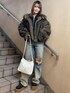 【アウター】 今TikTokでも話題のリバーシブルブルゾン!! 1着で2wayで着れます🫶🏼🫶🏼 見た目オーバーな感じですが、羽織ってみると 見た目以上に軽い🖤 ネックのベルト締めてマフラー代わりにも🧣 【トップス】 ダブルジップで下オーバーに開けても可愛い🩷 薄手の羽織にも!! 162cmでお臍隠れるぐらいの丈感です! 【ボトムス】 ヴィンテージ×ダメージが可愛い!! グラデーションになっててトレンド感のある ダメージデニムです💖 162cmSサイズ足の甲覆うぐらいの丈感です! 【シューズ】 めちゃくちゃ楽ちんなスリッポン! EVRISオリジナルのバックルベルト付きです🙌🏻 足のサイズ24.5cmでLサイズ履いてます! 【バッグ】 スタッズがオリジナルのデザイン🤩 生地が柔らかく大容量で入ります!!
