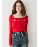 齊藤愛奈(EVRIS)のニット/セーター「ラインストーンストラップロゴニットトップス」を使ったコーディネート