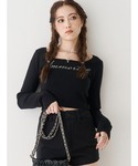 齊藤愛奈(EVRIS)のニット/セーター「ラインストーンストラップロゴニットトップス」を使ったコーディネート