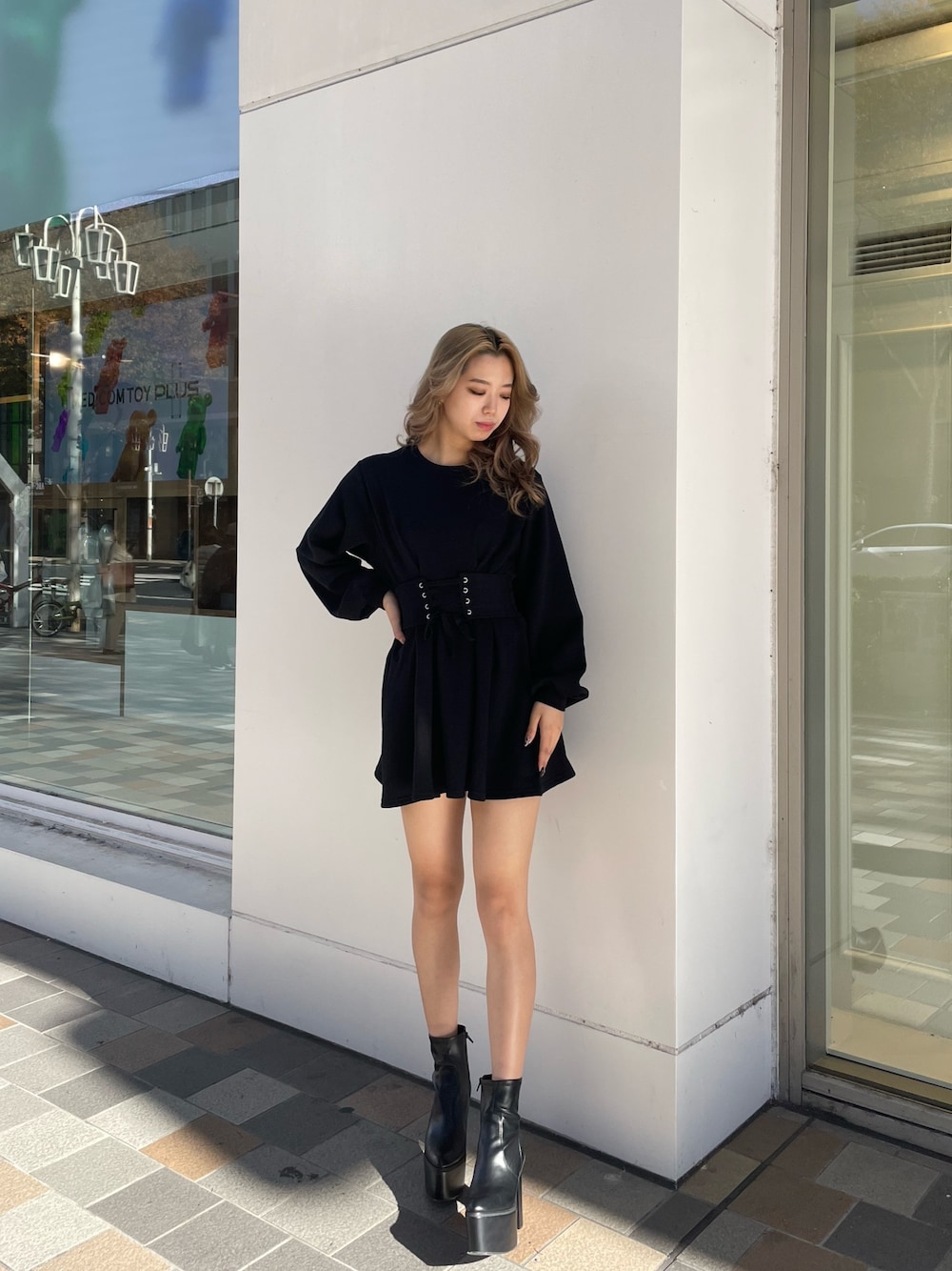 YURARA(GYDA)のワンピース「2WAY コルセットスウェット フレアワンピース」を使ったコーディネート