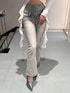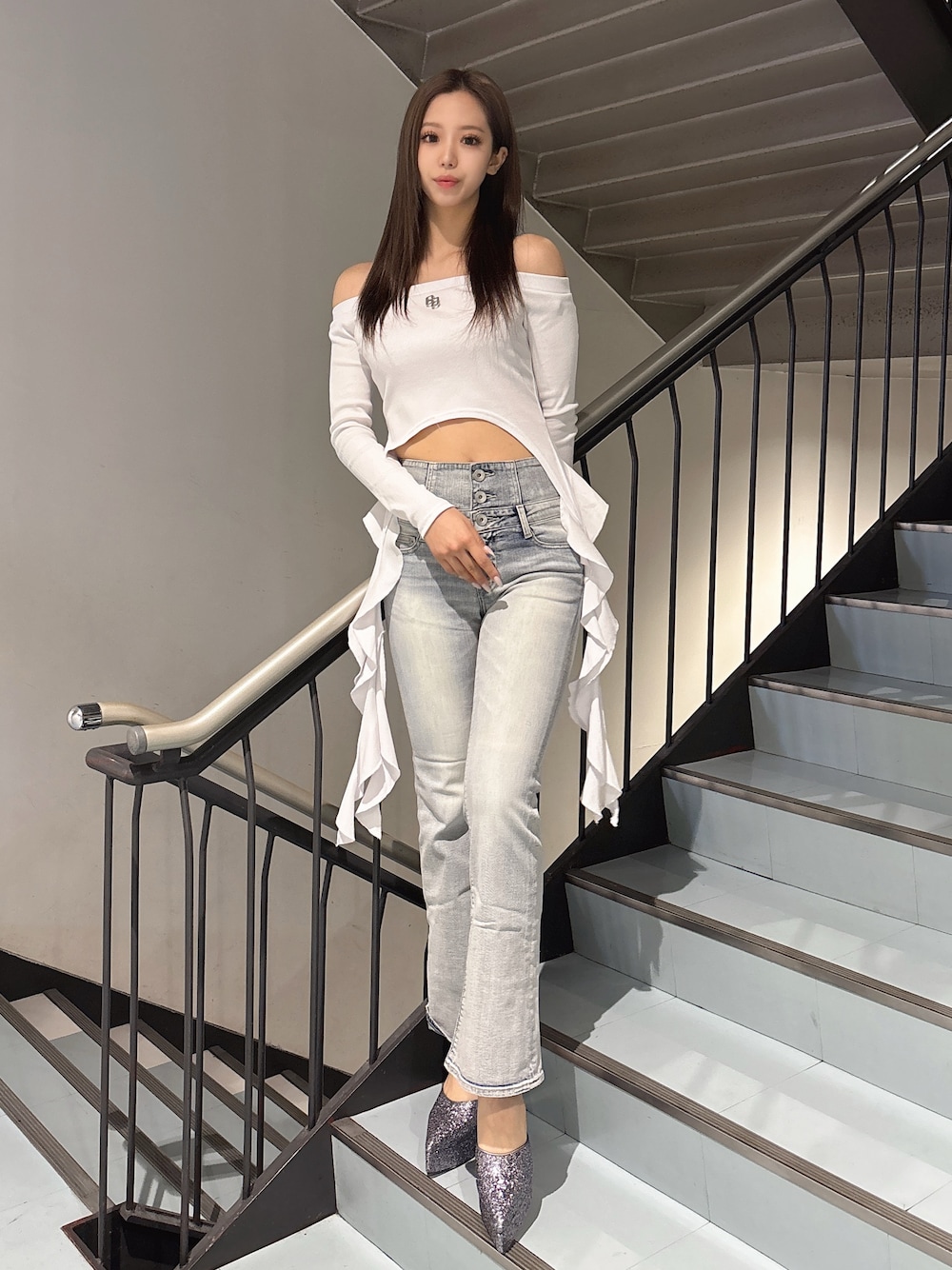 【トップス】 タイトなオフショルトップスは、コーデのワンポイントとしてお使い頂きやすいアイテムです!!ワイドパンツなどデニム合わせがおすすめです🤍 【ボトムス】 GYDA定番のウエストクロスデザイン!!!三つボタンでウエスト位置が高く見えるため脚長効果抜群です✨✨オーバーサイズのトップスをインして後ろのクロスを見せてあげるのもおすすめです♥️(170cmでMサイズ着用) 【シューズ】 キラキラ素材の厚底ミュールは、クッションがしっかりと入っているため、靴擦れしにくくなっており長時間の着用にもおすすめです💖(24.5cmでLサイズ着用)