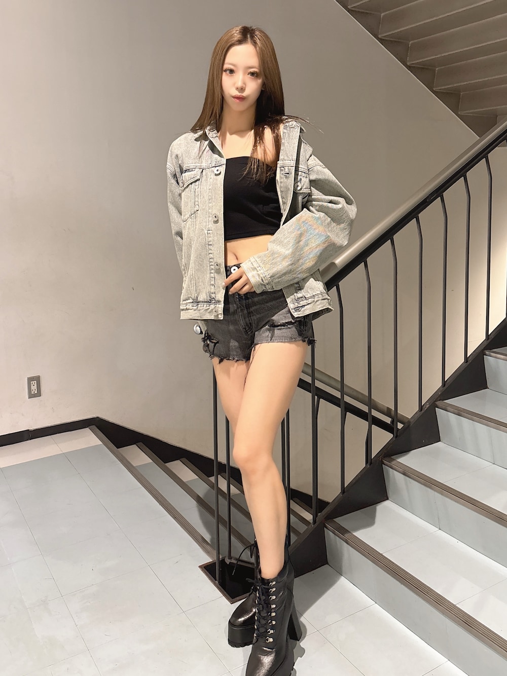 【ジャケット】 後ろのストーンデザインがポイントのオーバーサイズジャケットは、ミニ丈のボトムスとの合わせがおすすめです🤍コーデのワンポイントにっ✨✨ 【インナー】 チェーンが取り外し可能の2wayデザインなので、オフショルなのどインナーとしても着用して頂けます!! 【ボトムス】 ショートパンツは、ダメージ加工が沢山入っているためカジュアルコーデにお使い頂きやすいアイテムです✨️ミニ丈なので、ワンサイズ上のサイズがおすすめです!!(170cmでLサイズ着用) 【シューズ】 スポーティな印象のタンクソールですが、太めのヒールで安定感があります!!フロント部分のレースアップデザインなのでコーデを華やかな雰囲気にしてくれます🫶🏻︎💕︎︎ (24.5cmでLサイズ着用)