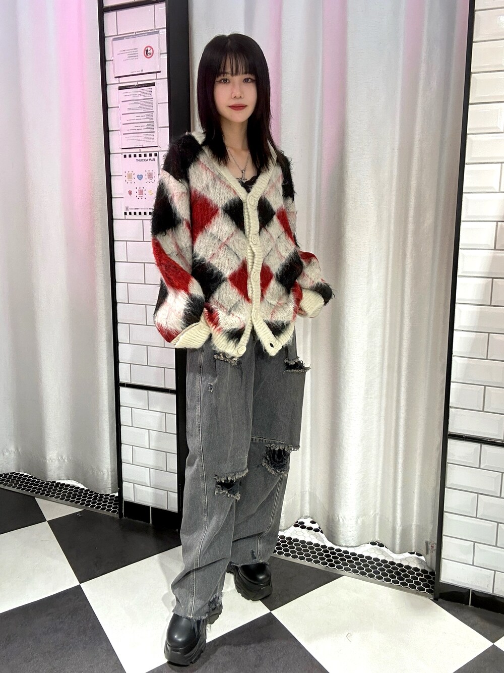 【カーディガン】 →パターンモヘアライクルーズカーデ ゆったりしたルーズなサイズ感が可愛すぎる...🖤🤭 私は164cmですが、おしりギリ隠れるくらいです!高身長だとなかなかルーズに着れるのは物を選ぶことが多いのでありがたい✨ ゆるゆるデニム合わせて全身ルーズコーデが冬は可愛いです🤭✨👏 素材感は毛足が長めでふわふわなのでチクチクせず着心地も抜群です! 首元Vネックなのもデコルテ綺麗に見せてくれてありがたいです...🤭 全4種類で他の柄も可愛すぎるので必見です👀✨ ぜひチェックしてください🤭