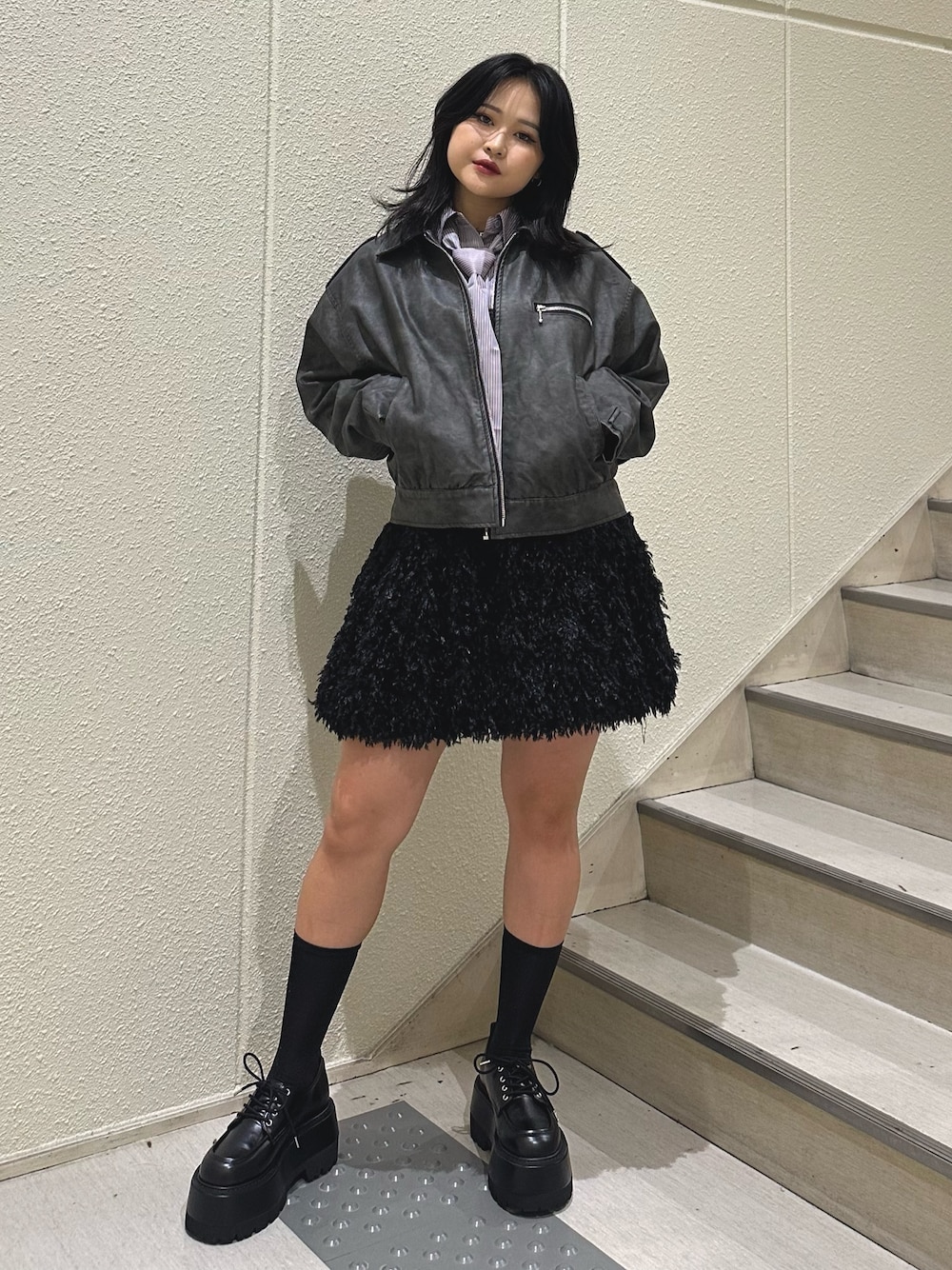YUMI(jouetie)のブルゾン「シングルZIPライダースブルゾン【セットアップ対応】フェイクレザー」を使ったコーディネート