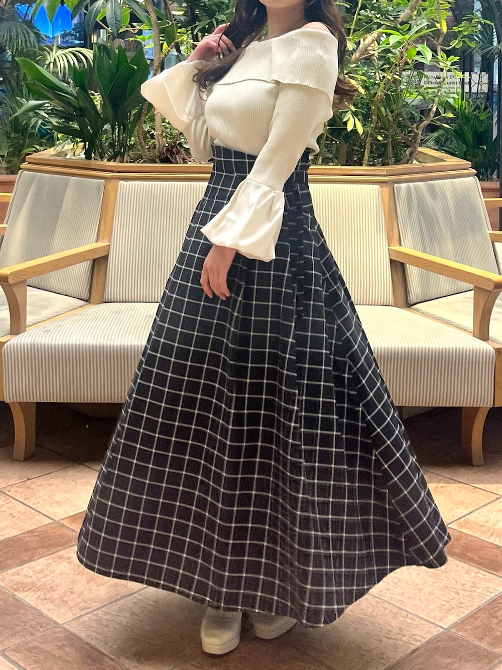 【春のデートコーデ】 ・トップス オフショルとお袖のフレアで華奢見え。.:*☆ グレーとピンクも淡いカラーなので、春だけでなく秋冬にも大抜擢!! どのカラー選んでも、ロングな期間着回し出来ちゃいます♪ ・スカート 大人気の-5kgシリーズ🌸 後ろのレースアップで、着痩せしつつ後ろ姿も可愛く♡" 高めのヒールと丈感長めが好きな153cmの私は、Mサイズをチョイス!! ウエストは後ろのレースアップで調節可能な為、Mサイズでも問題なく着用出来ました。.:*☆ ・ブーツ 普段21.5〜22.5cmの私は、低反発で分厚めの中敷を入れて毎日着用しています!! どんなコーデにも相性抜群で、スタイルアップしてくれる神アイテム✨ 今季のブーツはこれで決まり♡"