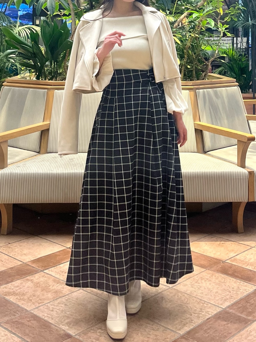 【大人デートコーデ】 ・アウター 春に一枚持っておくと便利なライダース!! ショート丈なので、どんなコーデに合わせてもスタイルアップを叶えてくれます♪ ・トップス オフショルとお袖のフレアで華奢見え。.:*☆ グレーとピンクも淡いカラーなので、春だけでなく秋冬にも大抜擢!!! どのカラー選んでも、ロングな期間着回し出来ちゃいます♪ ・スカート 大人気の-5kgシリーズ🌸 後ろのレースアップで、着痩せしつつ後ろ姿も可愛く♡" 高めのヒールと丈感長めが好きな153cmの私は、Mサイズをチョイス!! ウエストは後ろのレースアップで調節可能な為、Mサイズでも問題なく着用出来ました。.:*☆ ・ブーツ 普段21.5〜22.5cmの私は、低反発で分厚めの中敷を入れて毎日着用しています!! どんなコーデにも相性抜群で、スタイルアップしてくれる神アイテム✨ 今季のブーツはこれで決まり♡"