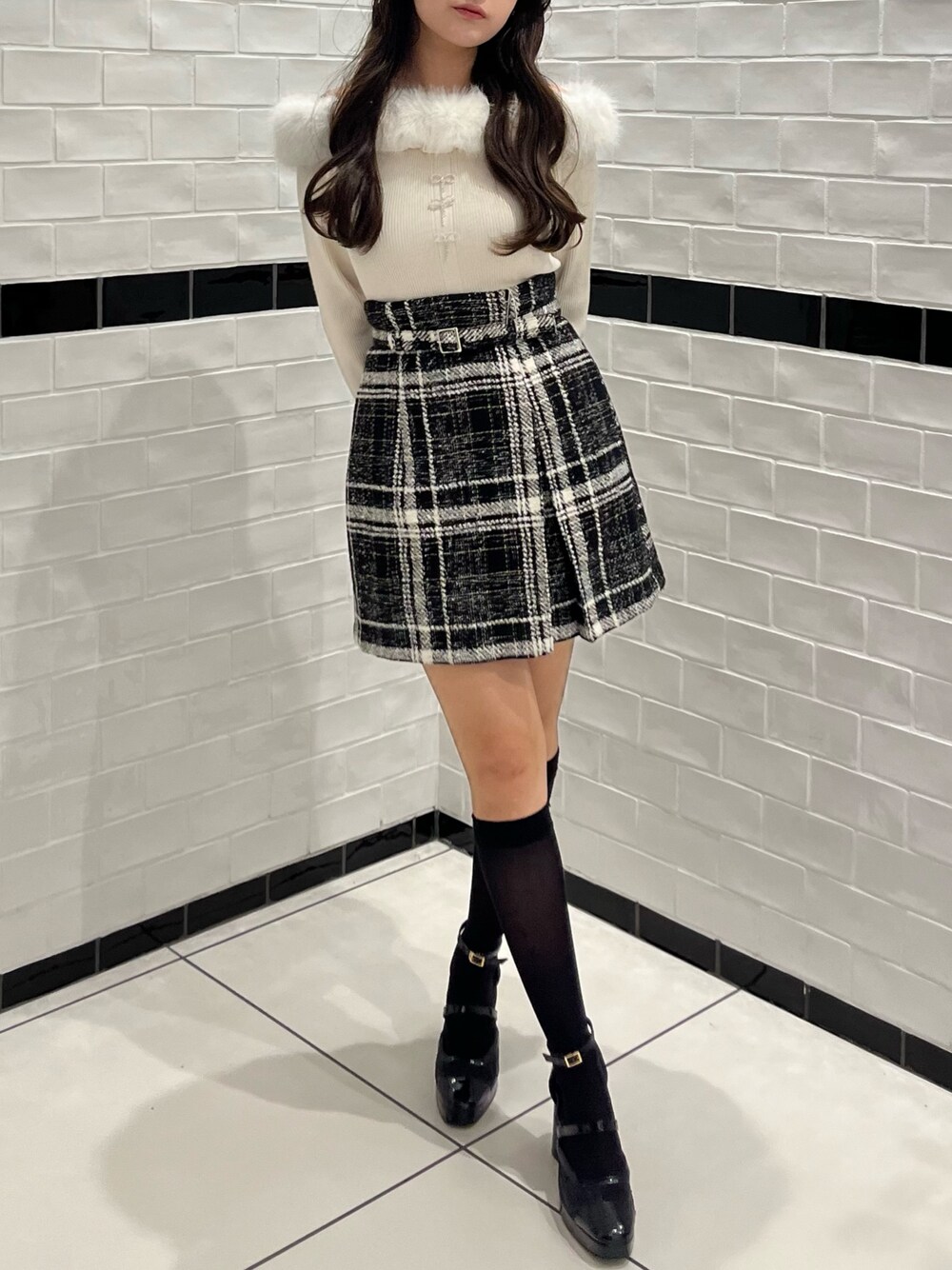 【ガーリーモノトーンコーデ♡】 ・トップス ファーが取り外し出来る2wayトップス!! 肩周り気になる肩は、ファーを外すとスッキリ着られます♪ ・スカート ハイウエストで脚長効果抜群! さり気ないアシンメトリーがワンポイントなって、デザイン性のある一枚です。.:*☆ ・シューズ 美脚になれちゃう最強パンプス!! 高めのヒールですが、つま先部分も厚底になっている為高低差が少なく歩きやすいです♪ 22.5cm(Mサイズ)の私は、中敷きを入れて サイズ調節してます☆
