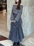 【モノトーンコーデ】 ・トップス 肌触り良いシャギーニット🧶 一枚で着てもチクチクせず、楽に着られます♪ 長すぎない丈感なのでアウトでもだらしなくならず、インしてもごわつかない厚さで着回し豊富!! ・スカート マーメイド履きたいけどボディラインが出るのが苦手、、と言う方必見! 全体的にくしゅっとギャザーが入っている為、シルエットが出にくく、気になる腰回りをカバーしてくれます♪ ・ブーツ ロングにもショートにもなっちゃう、今季大優秀ブーツ! ローヒールなので、とても歩きやすいです♪ 22.5cmの私は、中敷を入れて愛用してます♡