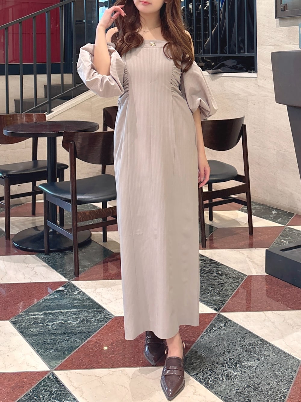 ・ワンピース お袖が取り外し出来る着回し力抜群アイテム! サイドのギャザーが、ウエストの細見えを叶えます♪ ・パンプス 22.5cmの私でMサイズがぴったりでした!! シアーやハイソックスを合わせるだけでトレンドコーデに。.:*☆