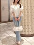 ・トップス ふわっと可愛いトップス♡ チュールでボリュームが出て着太りするかなぁと不安でしたが、デコルテラインがすっきりしているので骨ストでも綺麗に着られました♪ 肩の部分を上げて着ることも可能なので、オフショルが苦手な方はオンショルで!! ・パンツ シルエットがとにかく綺麗なスキニー。.:*☆ ペプラムシルエットのトップスを合わせると、気になる腰回りをカバーして着られます♪ ・バッグ とても軽く、肩がけにも出来る万能アイテム!! シンプルなデザインなので、チャームやキーホルダーをつけてアレンジするのも可愛くておすすめです♡ ・シューズ 身長とスタイルが爆盛れするサンダル♡ つま先部分が厚底になっており、ヒールも太めなので安定感ばっちり! 22.5cmでSサイズ着用です♪