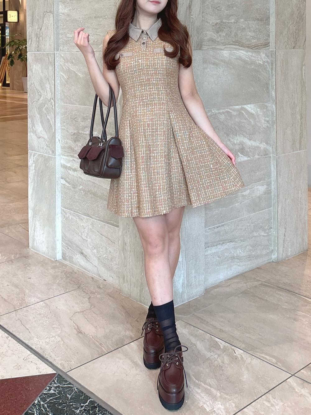 koharu(dazzlin)のワンピース「シャツカラーツイードミニワンピース」を使ったコーディネート