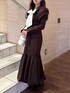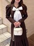 ・ワンピース パフスリーブとバルーンシルエットでふわっと華やかにしつつ、ウエストはキュッと細見えしメリハリのある一着です! 大きめリボンで小顔効果も♡ ・シューズ(22.5cmでMサイズ着用) 低めのヒールで安定して歩きやすい! クッション性があり、疲れにくいのもポイントです♪ 普段ならSサイズを選びますが、こちらのブーツはつま先部分が狭めでSサイズだと私は小指が当たり靴づれしそうだったので、Mサイズにしました! つま先部分あまりますが、大きくて歩きにくいなど無く毎日愛用しています♡