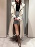 ・コート ハリ感のある生地で、ベルトでウエストを縛るとAラインシルエットになりワンピースの様に着られる春アウター♡ ・トップス さらっとした軽い生地でとても楽に着られるのに、ベロア素材で一枚着るだけで高見え!! デニムとも相性ぴったりで、簡単にお洒落上級者コーデが完成します。.:*☆ ・スカート タイトすぎない台形シルエットで、骨格問わず着られます! ベージュは、他に無い生地感なので着るだけでお洒落見え確定♪ ・ブーツ 22.5cmでMサイズ着用です! 普段Sサイズを着用している私は、中敷きを入れたら歩きやすいサイズ感でした♪ ヒールが8cmあるので、どんなコーデに合わせてもスタイル抜群に仕上がります。.:*☆
