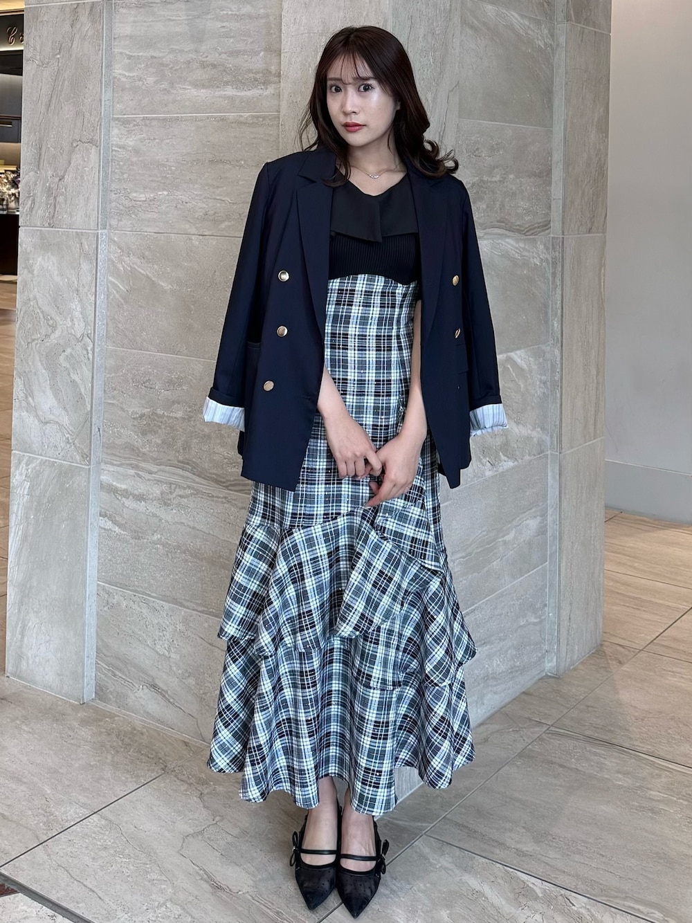【 ジャケット 】 春の王道ジャケット。🌸 裏地も可愛いのでお袖をまくって着ても可愛い✨️ 細身のシルエットなのでスタイルアップ◎ 【 ワンピース 】 dazzlinのマイナス5キロワンピース。 後ろにコルセットが付いているので、ウエスト調節ができスタイルアップできます◎ ブラックはスカート部分がキラッと光るので可愛いです♡ 【 シューズ 】 シンプルなデザインの中に華奢なリボンで華やかなパンプス。オケージョンなどでも様々な場面で使えます👠 161cm / 骨格ウェーブ / ブルベ冬 / 23.5cm