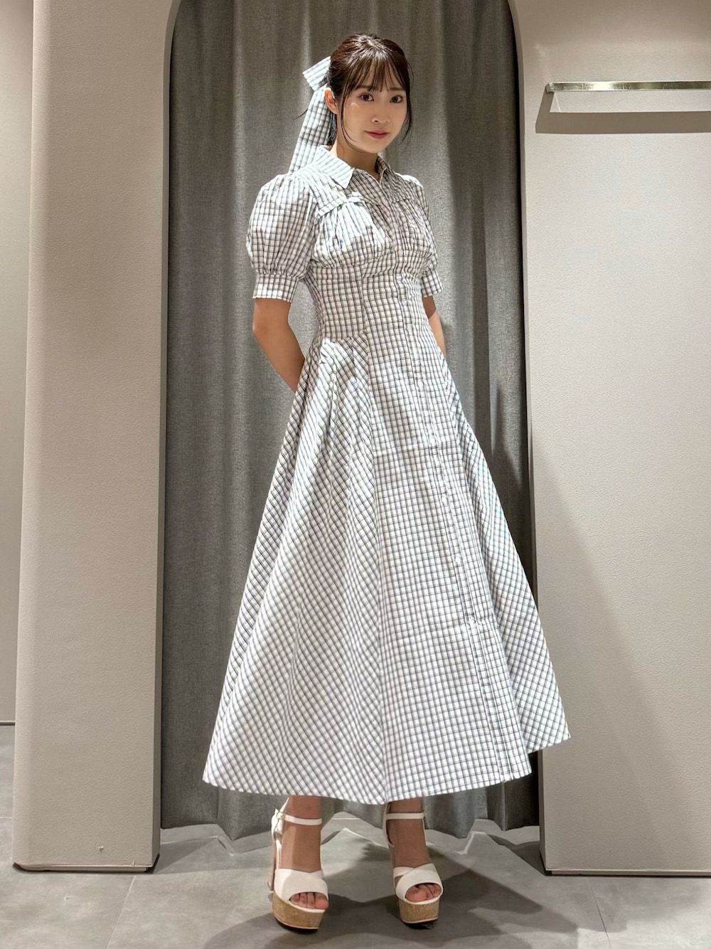 【 ワンピース 】 大人気コラボレーションアイテムのシャツ生地ワンピース✨️ ベルトは腰にリボンで巻いても、首元にボウタイリボンとしても、ヘッドアクセとしても色々使えてとっても可愛いです、、、♡ 【 シューズ 】 dazzlin20周年復刻アイテム🛍✨️ ヒールの高さがありますが、 安定感があり歩きやすいサンダル👡 コーデにも合わせやすいのがポイント◎ 161cm / 骨格ウェーブ / ブルベ冬 / 23.5cm