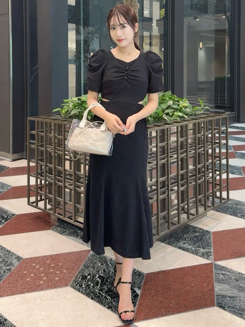 【 ワンピース 】 ウエストがカットアウトされてるワンピース! シンプルなワンピースだけど、周りと差がつくデザインです☺︎ 【 シューズ 】 the シンプル!なサンダル👡 カジュアル・フェミニンどのようなコーデにも悩まずに合わせやすいです✨️ ローヒールなので歩きやすさも◎ 161cm / 骨格ウェーブ / ブルベ冬 / 23.5cm
