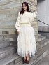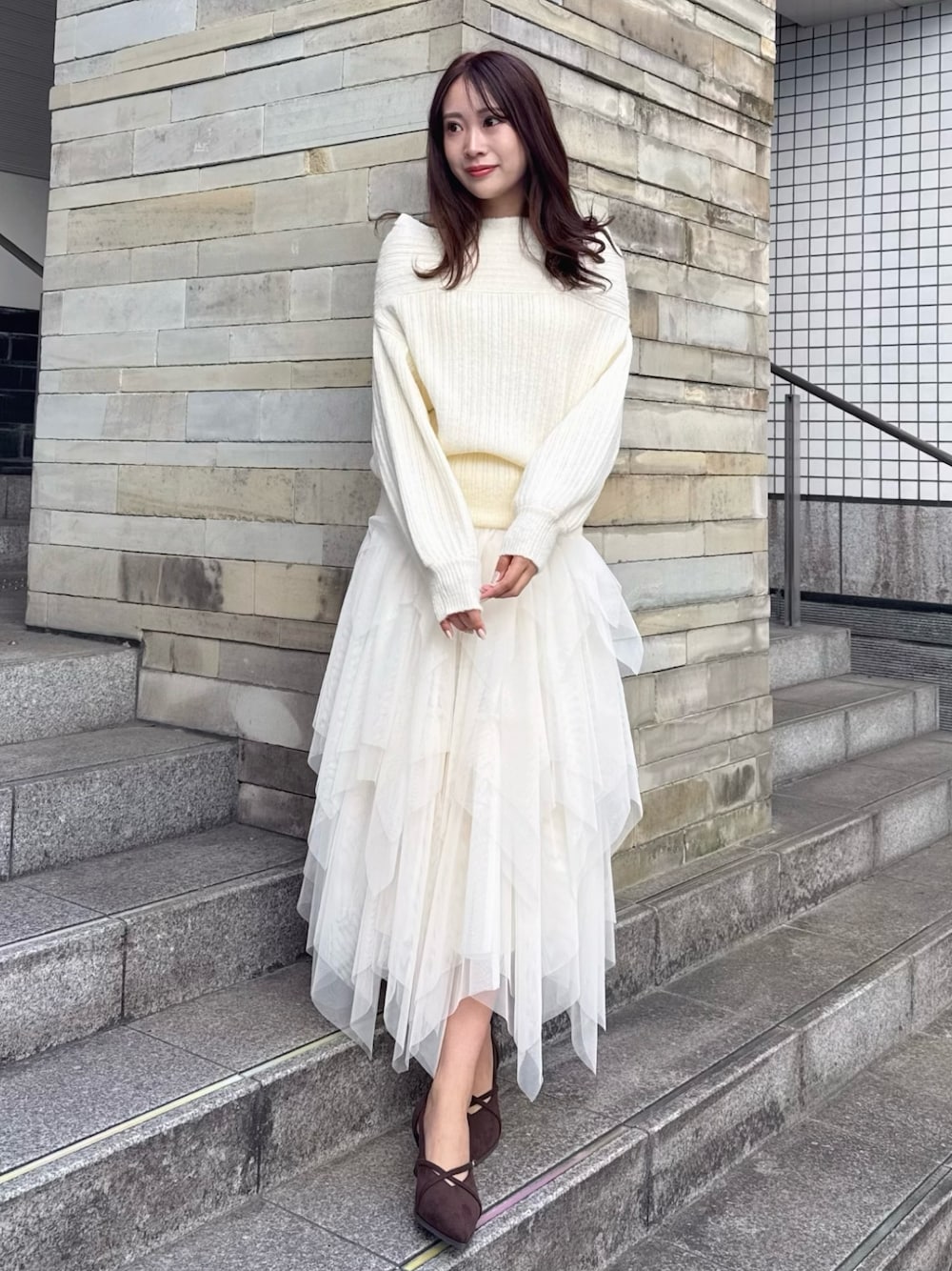 \ オールホワイト🤍⋆꙳ / 【 トップス 】 冬には欠かせないオフショルニット!オフショル部分だけラインが横に入っているのでオフショルがしっかりできて可愛いです✨️ 丈が長めなのでミニ丈でもロング丈でも合わせやすいです! 【 スカート 】 こんなチュールスカートが欲しかった!ふわっと広がり段々になっているので360度可愛いです♡ ウエストもゴムなので着やすさ○です! 【 シューズ 】 ヒール5.7cmと歩きやすい高さで、 クロスのベルトがアクセントで可愛い☺︎ ワンピースにもパンツにも合わせやすいです✨️ 161cm / 骨格ウェーブ / ブルベ冬 / 23.5cm