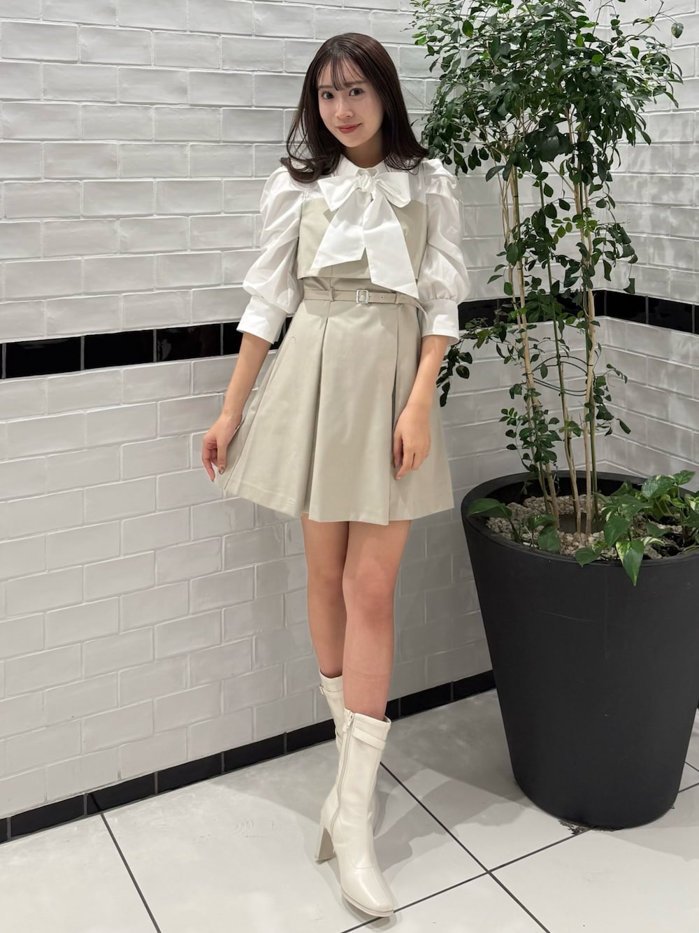【 ワンピース 】 リボンが取り外しできる2WAYタイプのミニ丈ワンピース!ウエスト絞れるのでスタイルアップも○ 【 シューズ 】 ミドル丈のブーツ 👢 足首がしっかり隠れるのでミニ丈コーデにも合わせやすいです◎ 161cm / 骨格ウェーブ / ブルベ冬 / 23.5cm