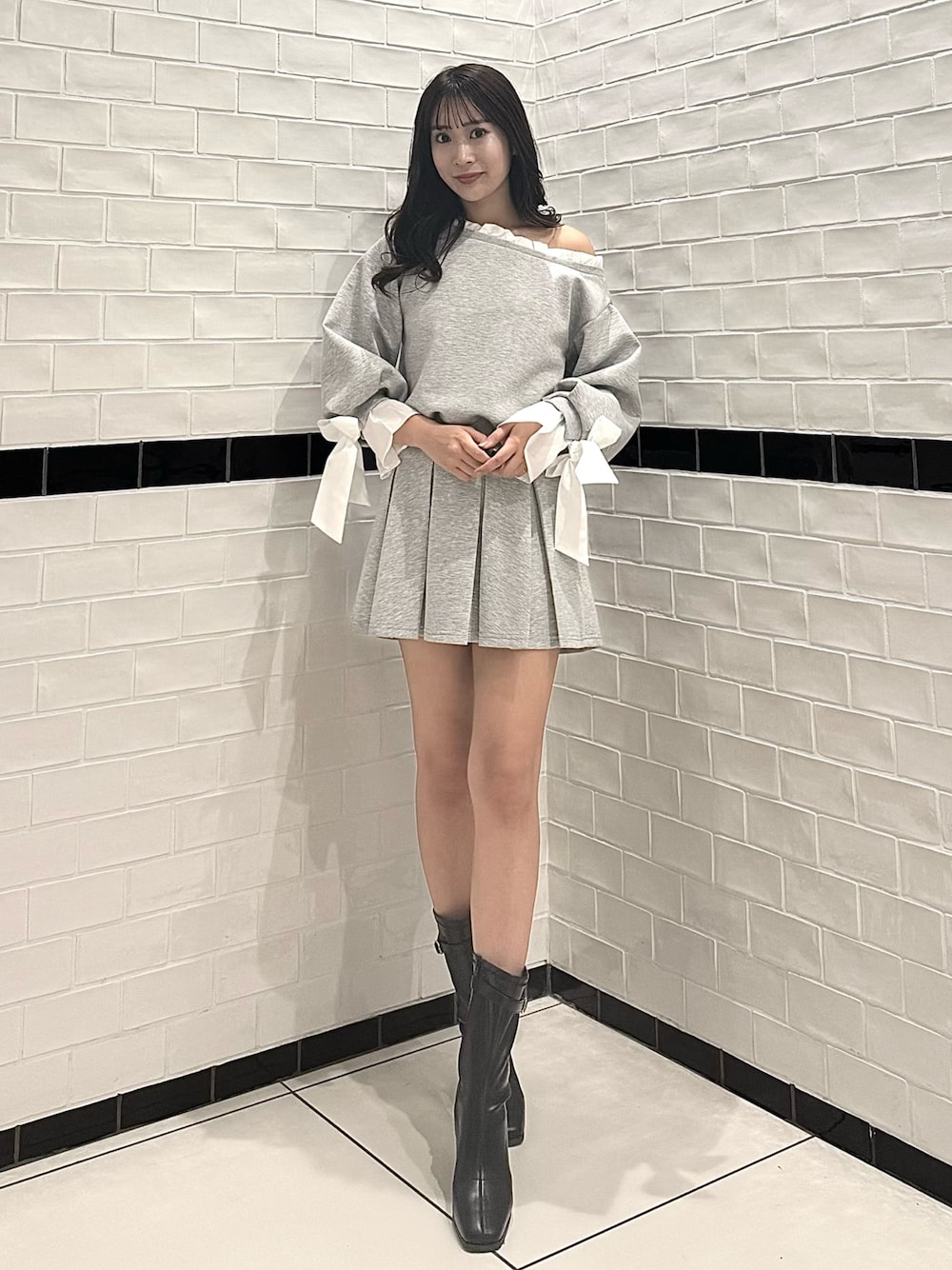 【 トップス 】 〈セットアップ対応〉 オンショル・ワンショル・ オフショル 着方たくさんできるスウェット✨️ 袖と襟元の素材違いのフリルやリボンがポイントです! 【 ボトムス 】 〈 セットアップ対応 〉 プリーツがしっかりしているハイウエストスカート!インパンも付いているので安心感○ 【 シューズ 】 ミドル丈のブーツ 👢 足首がしっかり隠れるのでミニ丈コーデにも合わせやすいです◎ 161cm / 骨格ウェーブ / ブルベ冬 / 23.5cm