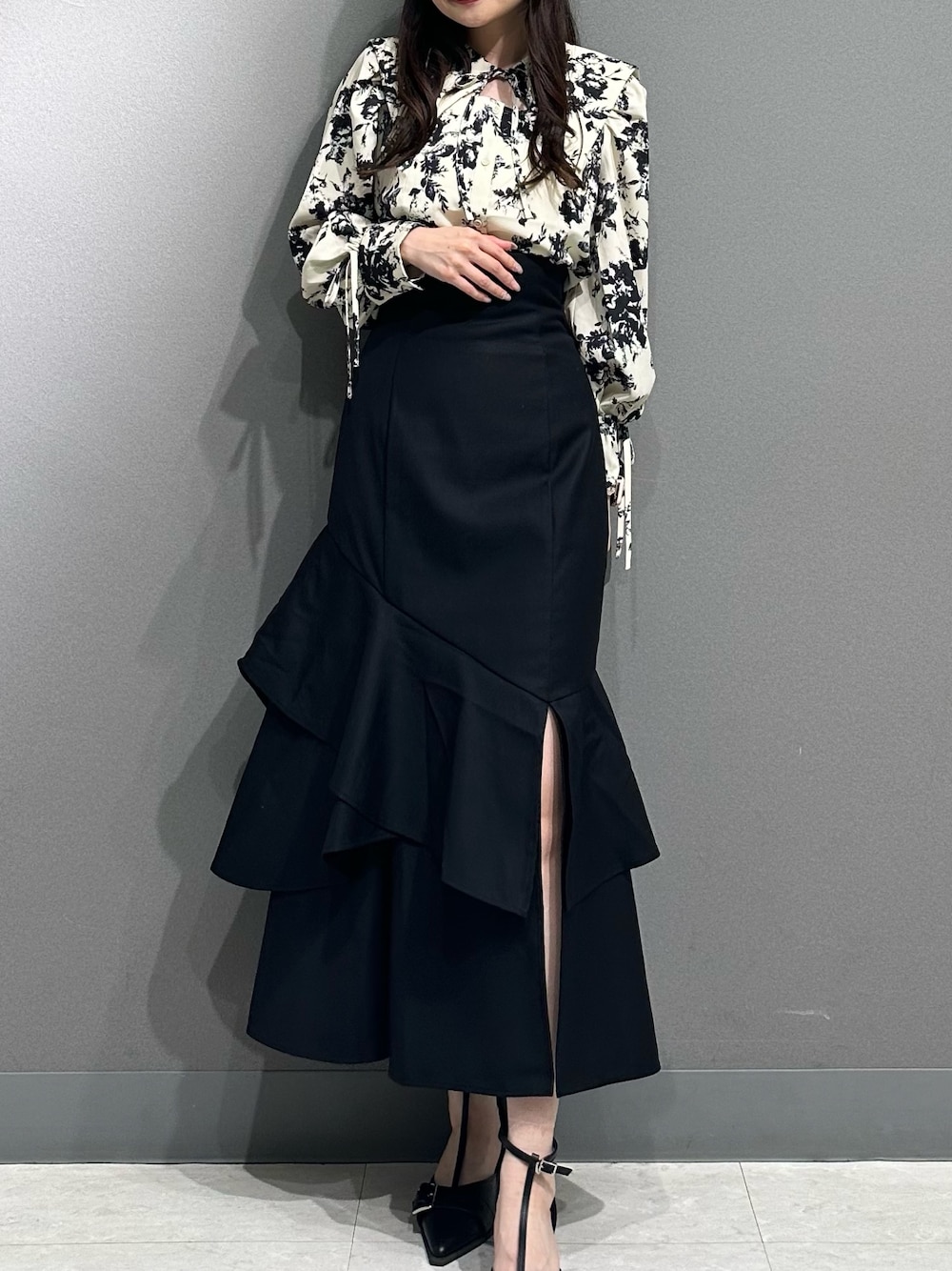 【トップス】ビッグカラーが目を惹くデザインのブラウス♡合わせるアイテムによってカジュアルにも着用できます◎ 【スカート】コルセットタイプでスタイルアップ効果抜群のスカートです♡さりげなくスリットが入っているので、マーメイドでピタッとしていますが歩いやすいです◎ 【シューズ】色々なテイストのコーデと合います◎ローヒールで歩きやすく安定しているのも嬉しいです♡ 23cmでMサイズ着用