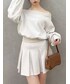 【トップス】3wayタイプのプルオーバー♡ 程よい丈感でデニムやチュールスカートとの相性も◎1枚あるとこの時期かなり便利です! 【スカート】セットアップで着用可能なミニスカート♡カット素材×プリーツと中々無いデザインでシルエットも綺麗です◎ 【シューズ】太め×ローヒールで歩きやすく安定します! 23cmでMサイズ着用です