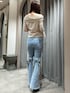 【トップス】ベロア素材で高見えするトップスです♡袖のフリルやオフショル部分にリボンが付いていたりと、女性らしいポイントも◎ 【デニム】バックスタイルのリボンが目を惹くデザインです♡形も綺麗でスタイルアップします◎ 【シューズ】ヒールが細めのデザインなので横から見た時にスッキリ見えます♡ 安定感もしっかりありました◎ 23cmでMサイズ着用
