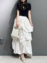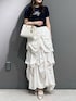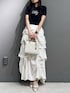 【トップス】コンパクトなニットトップス♡ビジューのロゴがワンポイントで可愛いです♡ 【ボトムス】タックがランダムに入っていてボリュームのあるスカート♡広がりすぎず、綺麗めが好きな方にもおすすめです◎ 【シューズ】リボンが付いている甘めなパンプスです♡オケージョンや綺麗目なアイテムはもちろん、カジュアルなアイテムとも相性◎なのでオンオフどちらも着用可能です 23cmでMサイズ着用 【バッグ】シンプルなキルティングバッグ◎ 財布、携帯、小さめのポーチを入れても少し余裕がありました◎