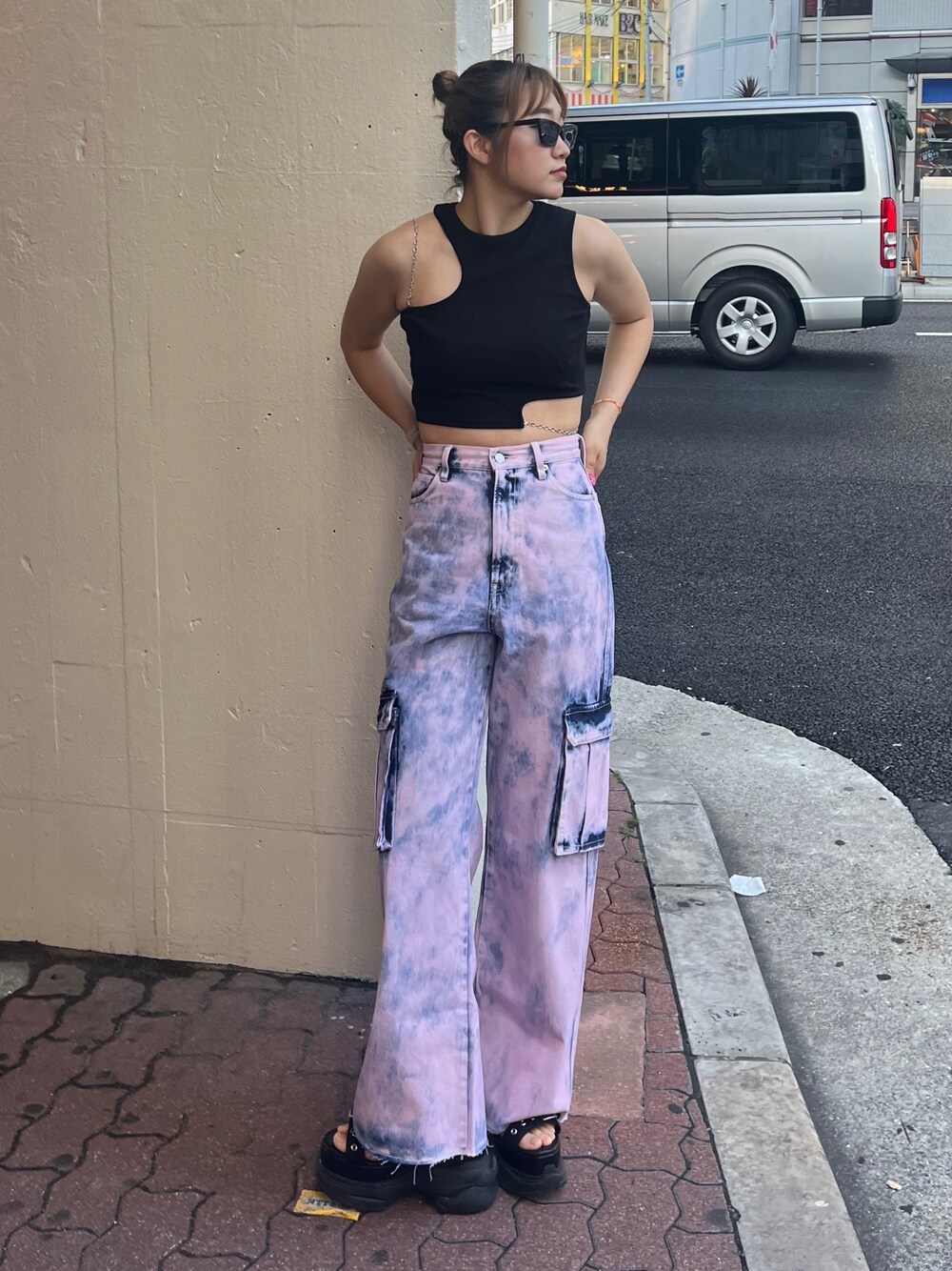 オンリーワンデニム✨ 1本1本染めてるのでそれぞれデザインが違って世界に一つだけのデザインのデニムです︎💕︎ シンプルになりがちな夏服ですがトップスのデザインで遊びを入れてあげるだけで 一気にオシャレ度upします!