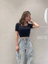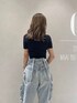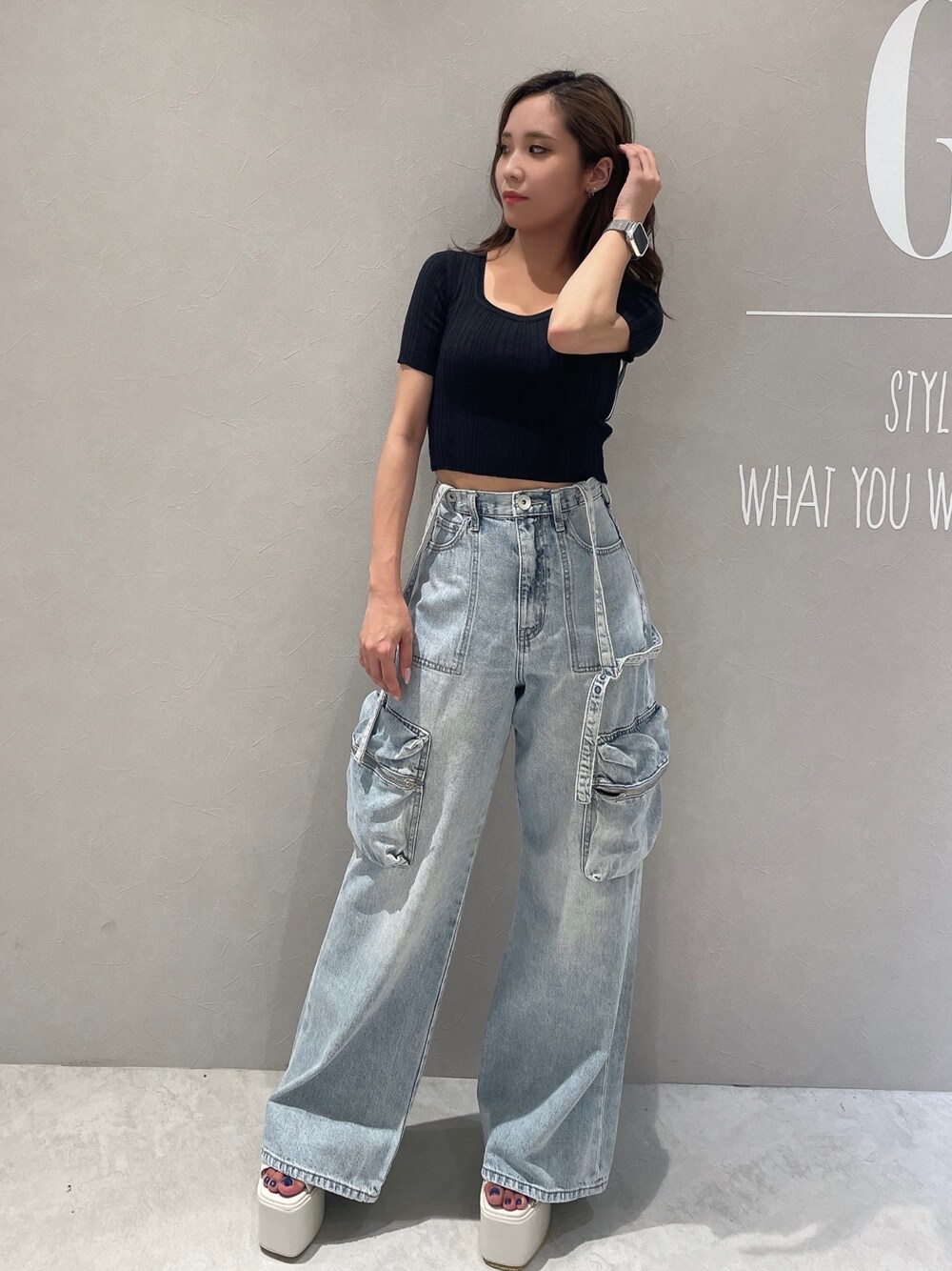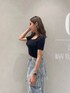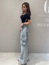《夏っぽカジュアルコーデ》 【Tops】シンプルなトップスは気になる二の腕を隠しつつ、サイドのラインで細見えさせてくれます♪ 【Pants】トレンド感のあるカーゴデザインのデニムは履くだけでおしゃれ見えする優れもの◎ 身長150cmでSサイズ着用です♡ 【Shoes】ベーシックな厚底サンダルはアイボリーを選んでいただくことで爽やかな印象に! 22.5cmでSサイズ着用です♡