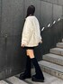 【ブルゾン】着てないに等しいぐらい軽くて着やすいのにしっかりあったかいです。メンズライクなオーバーサイズでお尻まで隠れるダボっと感がかわいいです!襟元がレザー素材なのがワンポイント! 【トップス】長すぎないハイネックなので首が詰まって見えないです。袖が長めの作りで萌え袖になるのが可愛いし腕長く見せてくれます!丈感はハイウェストと合わせて少し肌見えするぐらいです。 【スカート】パンツとレイヤードできるようにインパンが付いてないタイプです。Sサイズで少しゆとりがあるのでローウェストで履いても、ベルトをしてハイウェストにしても、どちらでも可愛いです!裾が切れっぱなしなデザインが可愛い! 【レッグウォーマー】裾にジップが付いていてスリットを入れることもできます。ゴム部分がピタッとしてくれるので歩いていても落ちてこなかったです! 【シューズ】いつものサイズ感より少し大きめな作りになってるので、普段は24.5センチでLサイズ着用するのですが、Mサイズでちょうどよかったです。シンプルなデザインのローファーなので使いやすいです。
