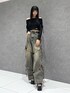 【トップス】オフショルでデコルテが綺麗に見えます!サイドのギャザーで長さ調節ができるのでご自身の体格に合わせて着れます! 【デニム】サイドリボンとスタッツがハートなのが可愛い!!ダボっと着るワイドデニムだけど、ハイウェストで穴が空いてるところからチラ見えする脚が細見え効果!! 【シューズ】厚底なのに軽くて高低差ないのがすごく歩きやすいです!クロスになってるデザインが可愛い!24.5センチでLサイズ着用してます!