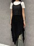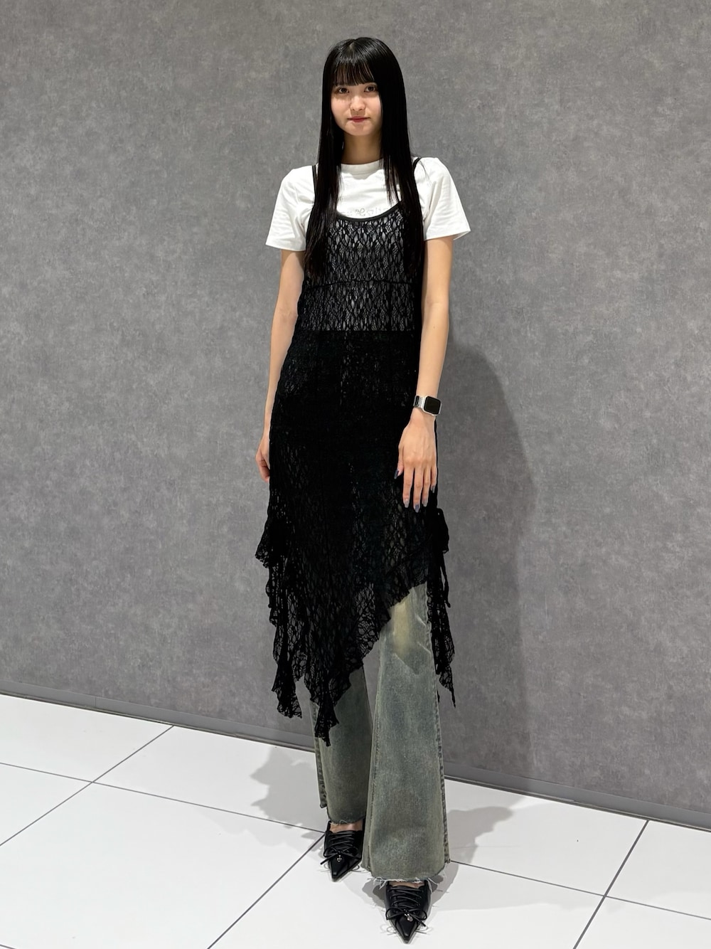 【トップス】シンプルだけど、ラメ感が可愛いTシャツ!インナーとしても使いやすいし、1枚で着ても可愛いです! 【ワンピース】流行りのレースワンピース!インナーをミニ丈で合わせてワンピ風でも可愛いです!デニムで合わせてあげるとおしゃれです! 【ボトムス】 サイドにカットが入ってるデニムでリボンは取り外しが可能になっています! ヴィンテージ加工がおしゃれ度upです! ストレッチがとても効いてるので履きやすいです!162センチで2.3センチ以上の厚底と合わせて裾引きずらない丈感でした。 【シューズ】レースアップが可愛いミュール!綺麗めでも、デニム合わせでカジュアルでも合わせやすいです!