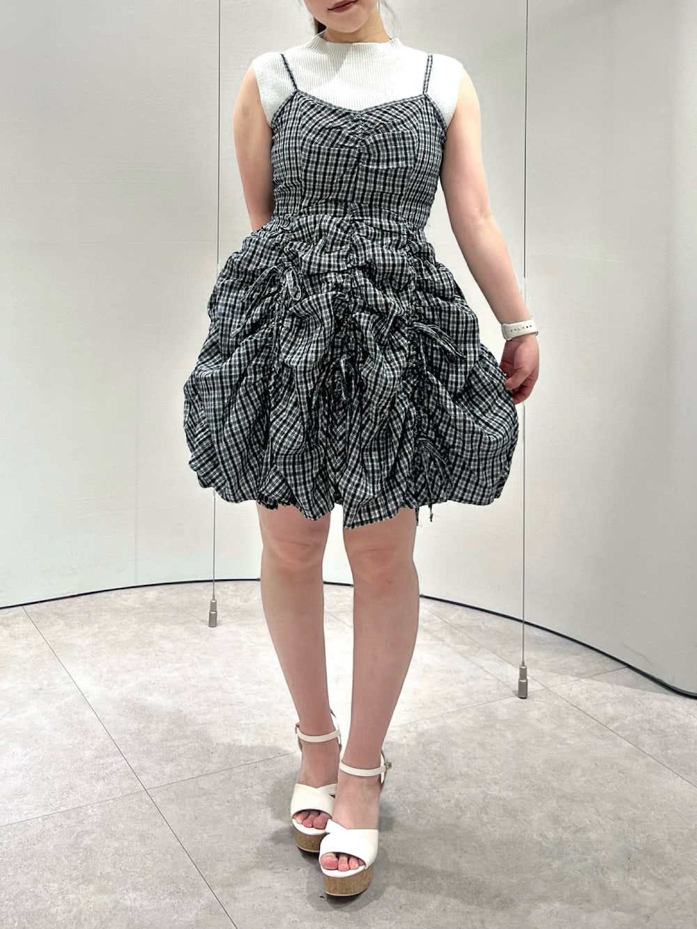 shion(dazzlin)のワンピース「ギャザーリボンミニワンピース」を使ったコーディネート