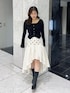 【トップス】 華奢見えトップス♡ デコルテを綺麗に見せてくれて、タイトなラインがウエストを引き締めて見せてくれるニットだよ☺︎ 【ボトムス】 ウエストから腰にかけてタイトで、切り返し部分からふわっと広がるシルエットはキレイめコーデに欠かせない1枚♡ 前が短いデザインなのでブーツで大人っぽく合わせられるよ☺︎ 152cmでSサイズ着用してます♫ 【シューズ】 シンプルデザインの中にも上品で大人っぽい印象を与えてくれるブーツ♡ 8cmと少し高めのヒールがスタイルアップを叶えてくれるよ☺︎ 22.5cm〜23.0cmでMサイズがちょうど良かったです♫