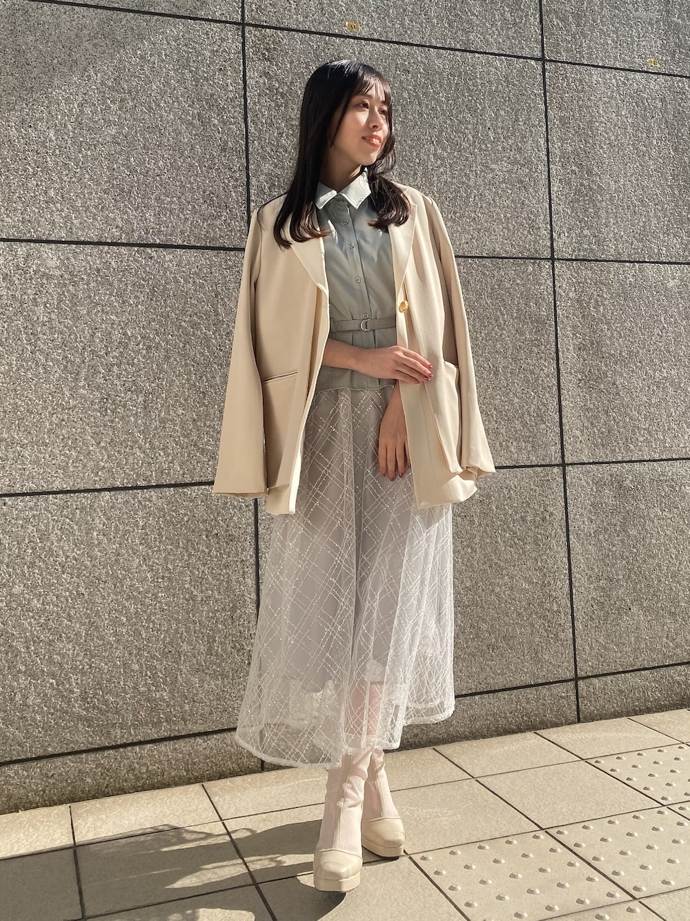 綺麗めコーデ 【ワンピース】 ベルトが細いので腰回りカバーと、スカート部分は華やかな印象にさせてくれます✨ 【ジャケット】 レイヤード風デザインで最先端のジャケット! 袖が開閉できるので抜け感でて可愛いです✨