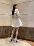 ホワイトコーデ 【トップス】 肩周りのフリルデザインが女性らしい印象に◎ フリルがレースなのでガンダムに見えないのでどの骨格の方でもおすすめ✨ 【スカート】 ウエストがくびれるハイウエストスカート! 形がフリルなので腰周りも気にならずカバー◎