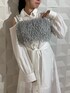 シャツワンピース 【ビスチェ】 羽のような素材感がフェミニンな印象とバッグリボンが後ろ姿までオシャレに✨ 【ワンピース】 ビスチェを重ねてトレンドのレイヤードスタイルがおすすめ✨ ニットやフェザーなど毛足のあるビスチェを合わせることで一気に秋らしさがプラスされます!