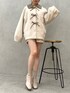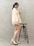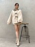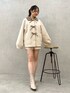 森香澄さん× dazzlin 【アウター】 フロントリボンモチーフが愛らしいボアコート。 こだわりのコクーンシルエットがカジュアルになりすぎず、大人っぽい女性らしさをプラスします。 衿が取り外し可能で広めな衿元で顔まわりを華奢見せできます! 【パンツ】 ミニマルなシルエットに落とし込み、コンパクトめに抑えています。 キュロットの様なスカートシルエットで足回りがすっきり見えスタイルアップ効果が高いです。