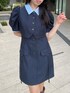 【ワンピース】 ウエストマークがキュッと細見えしてスタイルアップにしてくれます✨ シャツ襟がカジュアルさをプラスしてトレンド感アップ✨