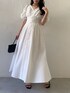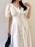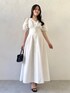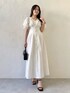 【ワンピース】 袖のレースデザインが可愛らしさプラスと、ウエストのリボンで調節して細見えさせます!