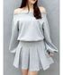 【トップス】 袖がバルーン風でふわっとして、ビジュが手元を華やかにさせます! オフショルやワンショルで着回しできます! 【スカート】 プリーツスカートなので着回ししやすく、ウエスト周りはピタッと細見え効果があります! 【ブーツ】 Mサイズ着用。 フィット感がありヒールも高すぎないので履き心地万能です!