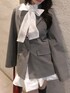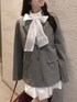 【ジャケット】 ミドル丈の長さでラフに着回しできます! 袖が開閉できるので抜け感でます! 【スカート】 バルーンシルエットのスカートでウエストがキュッとなっています!トップスはインやアウトでも着回せるので使いやすいです! 【ブラウス】 リボンの取り外しができる2way式です! ウエストが元々くびれて作られてるのでアウトできてもメリハリが出ます!