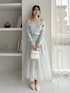 【トップス】 オフショルデザインでハートが華奢に刺繍されてます!オフショル部分のデザインがポイントです! 【スカート】 毎年大人気チュールスカートで動いた時の揺れ感や色味が発色してとても綺麗です! 【シューズ】 Mサイズ着用 ヒールが高過ぎないのとフィット感があるので歩きやすいです!