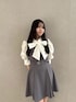 【ワンピース】 リボンデザインでウエストの切り替えなので綺麗なラインをだしてくれます!