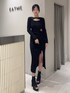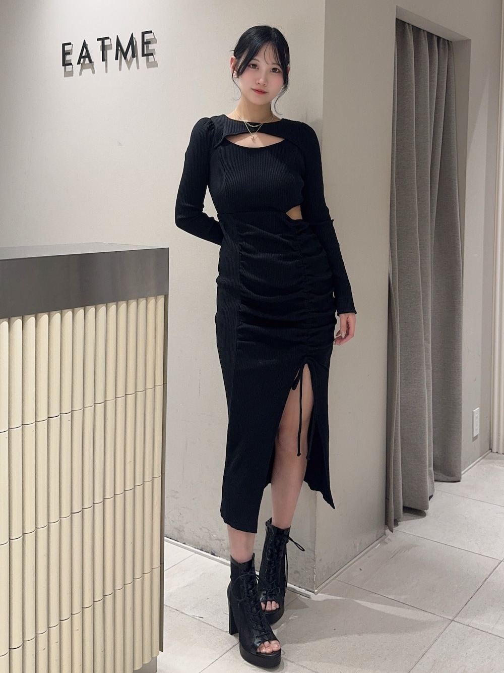 奏(EATME)のワンピース「ディープスリットデコルテリブワンピース」を使ったコーディネート