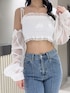 【トップス】色気を出してくれるセットトップス🖤ྀི透け感のあるシアーシャツと艶のあるベアがお肌を綺麗に見せてくれます🤍肩を落とすとキャミソールのリボンがちらっと見えて可愛い✨️丈感も短めなのでスタイルアップ効果もバツグンです🫧 【パンツ】裾のビジューが華やかなデニムパンツ✨️計算し尽くされたシルエットが美脚に見せてくれます🤍スリットが入っているためシューズを隠しすぎないところも嬉しいポイント♡169cmの私がMを着用して足首しっかり隠してくれる丈感です🫧 【ネックレス】ワンポイントのストーンが上品なネックレス💎爪止めもデザインされていて細部まで可愛い🤍春らしいピンクゴールドがお肌を綺麗に見せてくれます🫧シンプルデザインでどんなコーディネートにも合わせやすいのも嬉しい🎀ིྀ 【シューズ】マイナス5キロ見えのブーツサンダル👢🎀13cmのヒールを感じさせない高低差の無い履き心地が1日はいていても疲れにくくて嬉しい🥹細かいレースアップデザインも大人可愛くて店頭でも大人気です🤍シューズサイズ25cmの私はLサイズを着用しております✨️