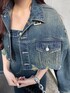 『jacket』ショート丈で切りっぱなしのデザインがevrisっぽくてスタイルよく着こなせる✨絶妙なビンテージ感あるインディゴのお色味も可愛いすぎる❤️ 『onepiece』タイトなデザインのデニムワンピース👗ストレッチが効いていて着やすさと動きやすさ◎ 『bag』ぷにぷにキルティング生地のショルダーバッグ👜キラキラのシルバーでより大人っぽく💄 『shoes』レースアップのショートブーツ🥾すごく軽いので、1日中歩き回っても疲れない!!^ ^