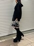 ブラックコーデ♡ 【hoodie】 柔らかく程よい張り感が特徴的なダンボールニットの生地を使用している為、綺麗に立体的なシルエットが出ます🖤 【skirt】 裾にボリュームが出るので脚がスッキリと見えスタイルアップ効果抜群🩶 【boots】 ヒールにしっかり被る長さにしているので膝下が長く綺麗に見える美脚ブーツ👢 普段24.5cm着用 【bag】 アウトポケットのデザインでカジュアルさを出して、フロントのベルトをポイントしてます🤍