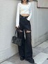 【tops】 ハートプレートをポイントにしたシンプルなデザインで、1枚着からアウターのインナーとしも着回しの効く1着🩶 【denim】 トレンド感のあるブラウン味のブラックカラーは、取り入れるだけで秋ムードを感じるスタイリングに🤎 身長162cmでMサイズ着用 【boots】 安定感のあるオリジナルのタンクソールと高すぎないヒールで歩きやすさ抜群です🖤 普段24.5cm着用 【bag】 2種のチェーン・ハートチャーム・キーリングなどをミックスさせたデザインでスタイリングのアクセントにおすすめです🔒